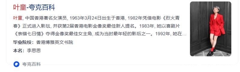 叶童本名李思思,1963年生于香港一个寻常巷陌里的工薪之家。